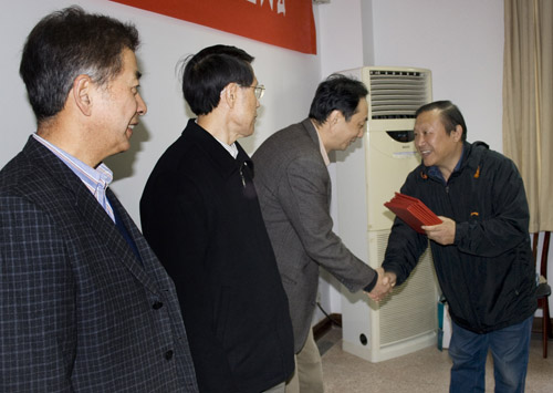 董梅芳副院长宣读了各系专业建设委员会的名单,程明山书记向各专业建设委员会委员颁发了聘书。