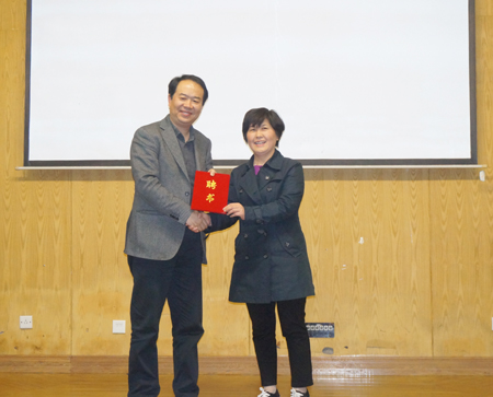 董梅芳副院长为尤肖虎教授颁发客座教授聘书
