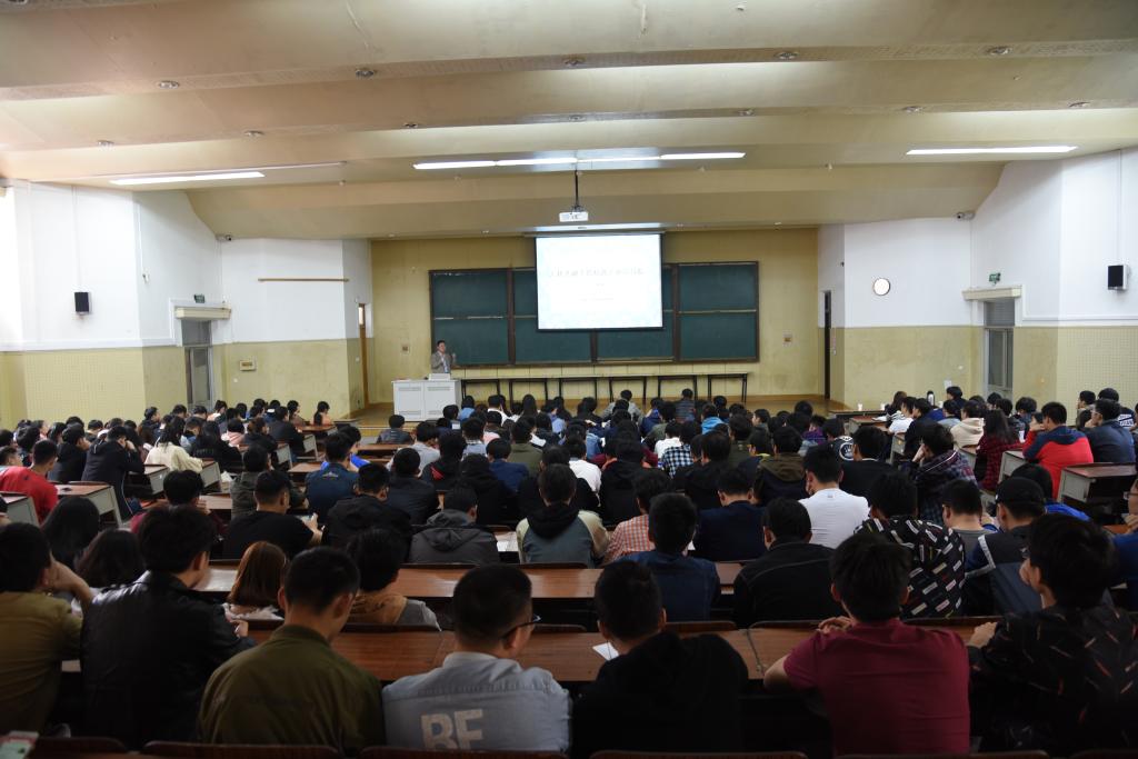 随后,李新德教授作《人机共融下的机器人视觉导航》讲座。李新德教授对自动化的教学、人与机器人共融发展等领域有较为广泛的学术研究。他在讲座中指出,随着科学技术的发展,机器人的发明与制造已经进入新一步的高台阶,与环境的共融、与人之间的共融、与机器人之间的共融将是未来机器人的三大特征。他还结合各工业大国对机器人的发明制造来展望基于手绘地图、手绘语义地图、受限自然语言、自然路标、完全自然语言的机器人视觉导航。最后,李教授倾听了学生们的疑问并通过事例解答,在座学生感到深受启发,受益匪浅。