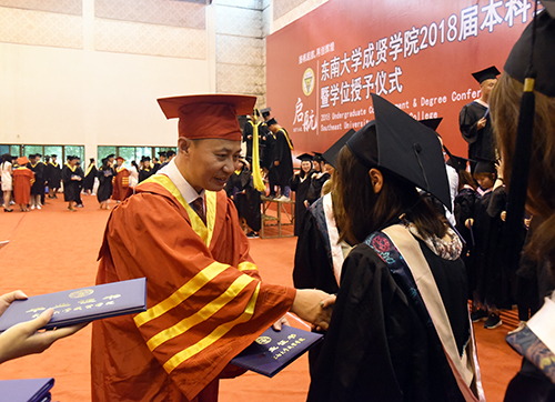 会上,徐悦书记宣读了对312名优秀毕业生的表彰决定。东南大学党委副书记、线上赌博app-云顶线上赌博平台 董事会副董事长、线上赌博app 学院院长郑家茂为优秀毕业生代表颁发了荣誉证书。