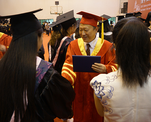学院领导为每一位毕业生颁发毕业证书并分别合影留念