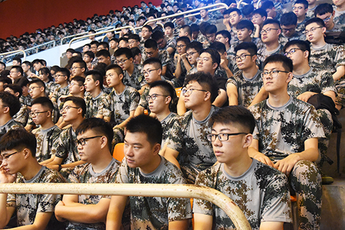 开学典礼新生认真聆听发言