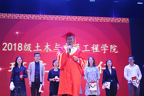 9月26日,我校土木与交通工程学院在大学生活动中心313成功举办主题为“你的青春,我看行”2018级新生开学典礼。学校党委书记徐悦,党委副书记、副院长王荣,学生处处长唐小平,土木与交通工程学院院长郭正兴以及其他院系党总支领导、优秀校友代表、合作单位负责人,土木与交通工程学院全体教职工,2018级新生和部分新生家长共计600余人参加了此次活动。