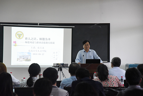 张天来教授的讲座主题为《育人之计,师德为本——师德风范与职业道德教育漫谈》。他首先强调了“师德”的重要性,并指出,百年大计,教育为本;教育大计,教师为本;教师大计,师德为本,并围绕“立德树人”是时代召唤、“立德树人”是教育传统、“立德树人”是师德典范、“立德树人”是职业操守四个模块进行介绍。讲座中,张教授通过对习近平总书记关于师德的系列重要讲话、教育部门对“立德树人”理念的阐释和践行、中国传统教育施行的宗旨是人文教育等方面有关对“师德”的重要性进行了详细且生动的阐述。他希望,全体教师应本着求真求美,成人线上赌博app 的学院精神,在学生中树立师德风范,不忘初心,倾心培养好社会主义的建设者和接班人。