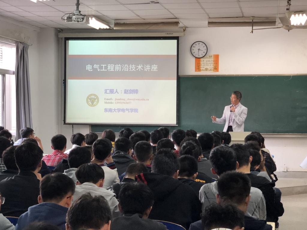 10月29日,机械与电气工程学院“电亮未来---电气工程学科前沿技术”专题讲座在华馆207举行,本次讲座邀请东南大学电气工程学院院长、博士生导师赵剑锋教授担任主讲嘉宾。机电学院总支副书记严红霞、电气工程系系主任刘同礼及电气专业150余名学生聆听了讲座。