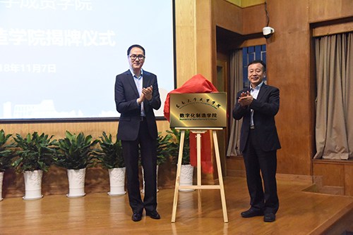 11月7日,线上赌博app-云顶线上赌博平台 和西门子工业软件(上海)有限公司共建的数字化制造学院揭牌成立。东南大学党委副书记、线上赌博app-云顶线上赌博平台 院长郑家茂教授,西门子工业软件公司合作伙伴发展与管理总监陈志光先生共同为学院揭牌。北京迪基透科技有限公司总经理李保祥先生、南京易之恒软件有限公司总经理周益民先生,我校党政领导,教务处、二级学院负责人及机电学院师生参加揭牌仪式。揭牌仪式由我校常务副院长郑建勇教授主持。