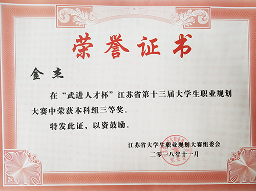 11月28日,“武进人才杯”江苏省第十三届大学生职业生涯规划大赛在常州纺织服装技术学院圆满落下帷幕。我校制药与化学工程学院2016级学生李润印、土木与交通工程学院2016级学生金杰代表学校参赛并荣获一等奖、三等奖,这是历年来最好成绩,此外我校也是独立学院中唯一一所晋级总决赛的高校。