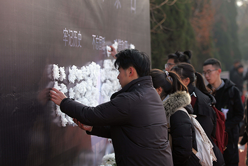 12月13日,是第五个南京大屠杀死难者国家公祭日。我校校团委组织各级学生组织开展了“勿忘国耻,圆梦中华”国家公祭日系列主题宣传教育活动,校团委书记、人武部部长潘明烽,部分学院分团委书记、辅导员,本届国旗团支部(16建筑学1团支部)全体成员以及各级团学组织学生骨干代表共280余人参加了活动。