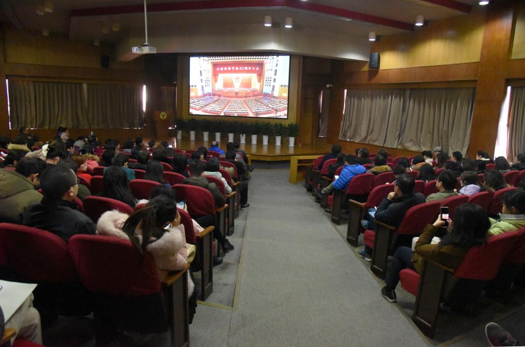 12月18日10时,庆祝改革开放40周年大会在人民大会堂举行,大会表彰了100名改革先锋,颁授了改革先锋奖章和中国改革友谊奖章,中共中央总书记、国家主席、中央军委主席习近平出席大会并发表重要讲话。线上赌博app 学院组织全院师生通过各种方式观看了大会实况直播。