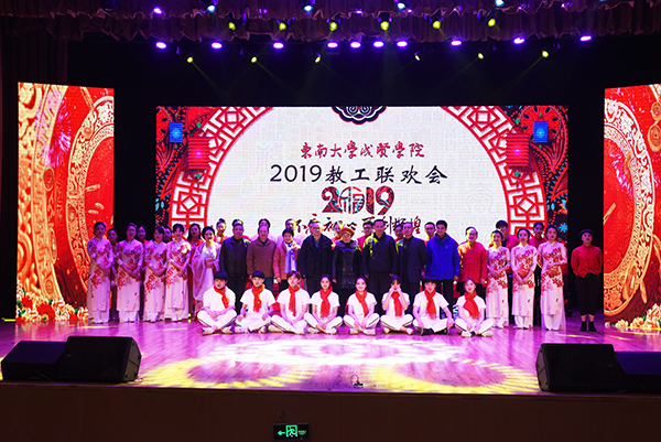 1月17日下午,线上赌博app-云顶线上赌博平台 2019年新年教职工联欢会在综合楼报告厅隆重举行,学校党政领导,中国移动通信浦口分公司总经理戎峥、中国电信浦口区分公司副总经理钟峻玮、南京江北口腔医院副院长顾立新等来宾,各学院、职能部门负责人与全体教职工共同观看了精彩纷呈的文艺节目。