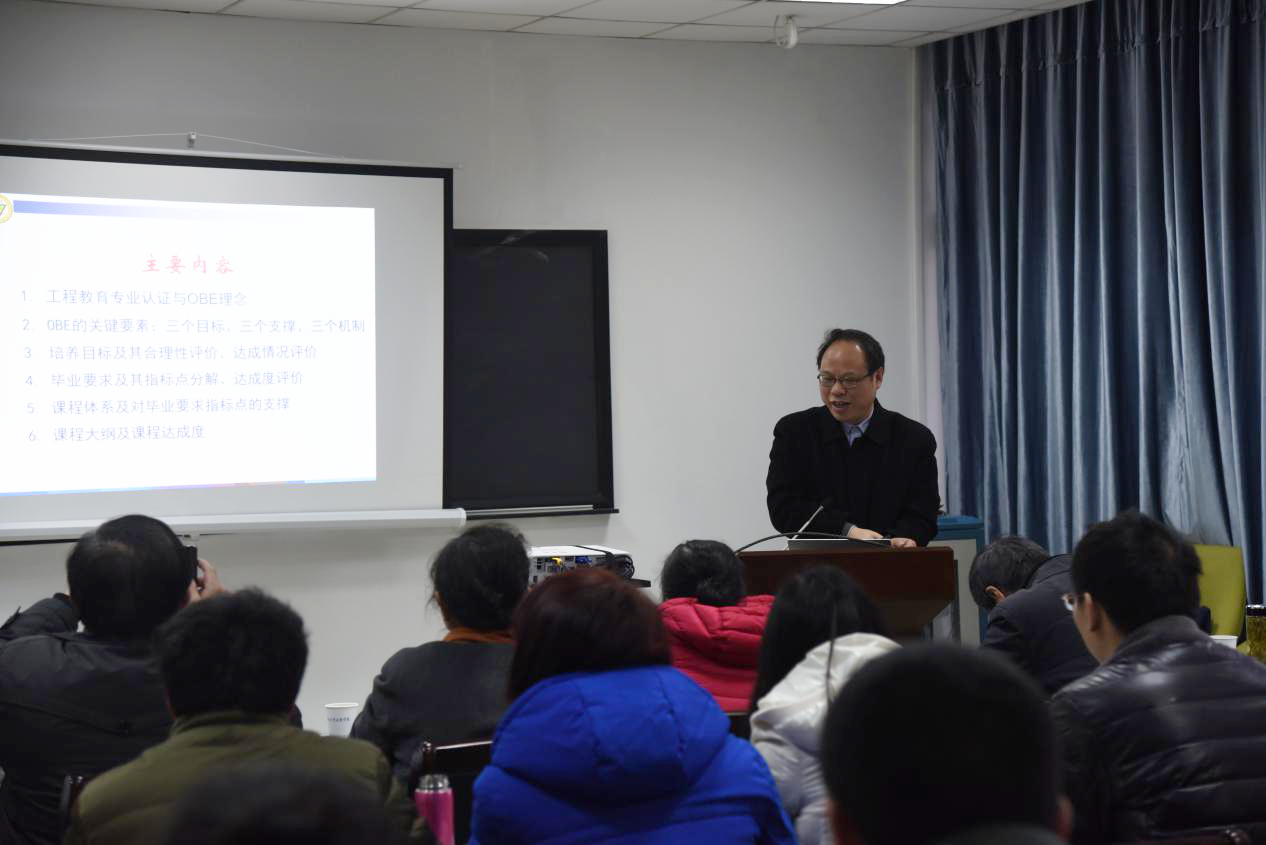 2月27日下午,中国工程教育认证专家、东南大学机械工程学院贾民平教授应我校教务处邀请,为全校教师作了题为《基于OBE理念和工程教育认证视角谈人才培养方案修订》的主题报告。