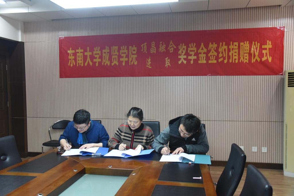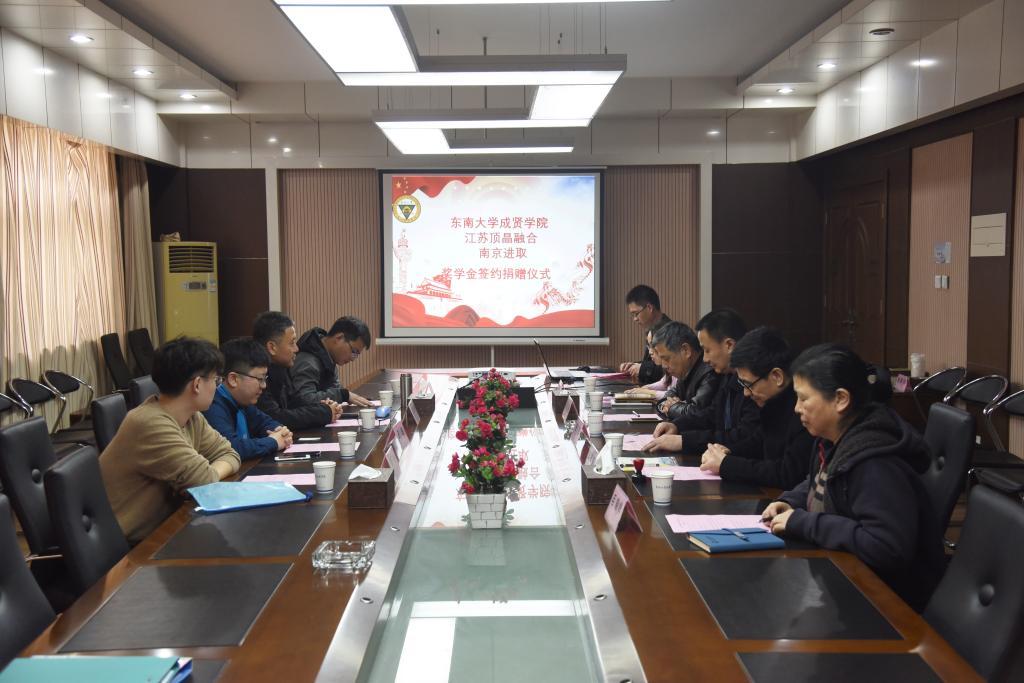 3月20日,线上赌博app-云顶线上赌博平台 “顶晶融合奖学金”&“进取奖学金”签约捐赠仪式在真知馆二楼会议室举行。江苏顶晶融合电力工程有限公司总经理王益先生、合伙人潘飞先生,南京进取电力技术有限公司副总经理周晓明先生、技术总监朱葛锋先生应邀出席仪式,我校党委书记徐悦、党政办主任周伟荣、学生处处长唐小平、机械与电气工程学院副院长毛晓桦出席了签约仪式,仪式由机电学院总支副书记严红霞主持。