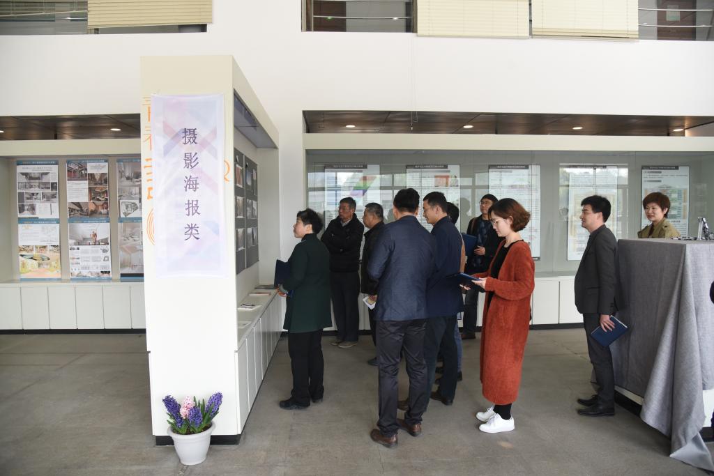 4月3日,大赛终审活动顺利举办,校园文化衍生品类、海报摄影类、艺术设计类作品在建筑与艺术设计学院展厅进行,网络新媒体类作品评审在真知馆102会议室进行。建筑与艺术设计学院副院长甄兰平,东南大学艺术学院副教授许继峰,南京工业大学艺术设计学院副教授曾勇,南京艺术学院传媒学院副教授韩栩担任评审。我校常务副院长许映秋,党委副书记、副院长王荣接待了各位评审专家。建筑与艺术设计学院党总支书记赵弘、学生处处长唐小平、学生处副处长苏力、建筑与艺术设计学院院长助理邵叶鑫等参与活动。