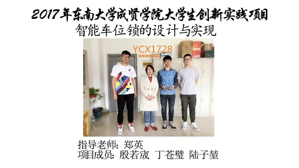 国家实用新型专利为智能车位锁(专利号201820896139.2),发明人:丁苍璧、陆子堃、殷若宬。该车位锁采用新能源供电,将太阳能与直流电有效结合,通过红外测距检测到车辆入库,交由单片机读取车牌数据,与系统中预先储存的车牌进行比对(判断入库车辆身份),当车位中停留的车辆离开时,红外测距装置将会检测到距离的突变,此时判断车辆已经离开,在短暂延时后,将挡板升起,将车位锁住。