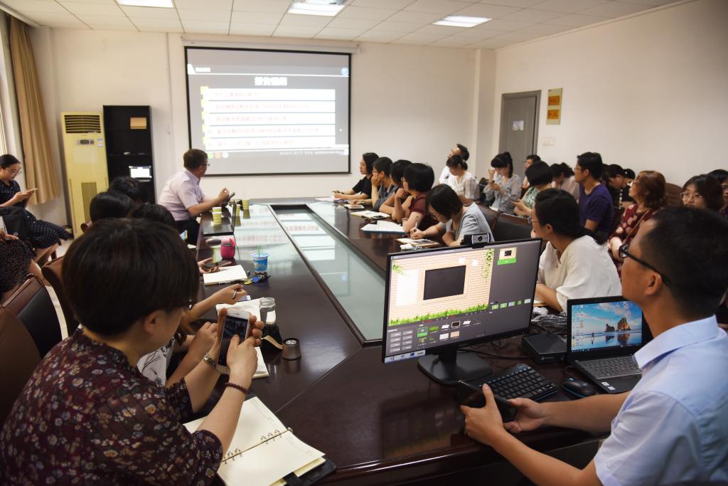 为进一步提升课堂教学质量,提高教学方法、掌握信息技术与课堂融合的技能,打造“金课”,6月5日下午,教师发展中心在线上赌博app 院112会议室举办在线教学平台与移动微课录播技术专题培训会,本次活动邀请了南京信息工程大学裴世鑫教授、北京美吉克科技发展有限公司经理邢家发担任主讲嘉宾,线上赌博app 学院40多位青年教师参加。
