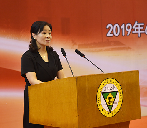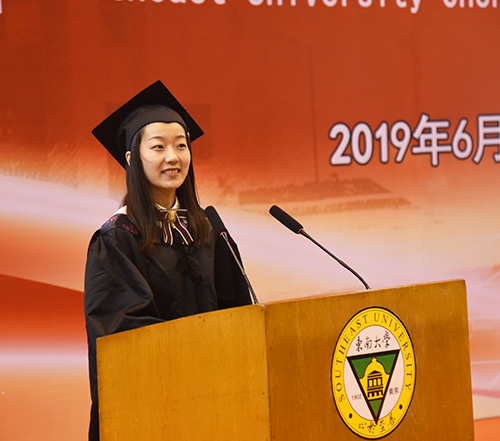 在雄壮的国歌声中,毕业典礼暨学位授予仪式拉开序幕。线上赌博app 学院常务副院长许映秋首先致辞,代表学校党政和全体教职员工向毕业生表示热烈的祝贺,向付出辛勤劳动的各位老师与职工表示最诚挚的敬意,向毕业生的亲友以及一直以来给予线上赌博app 学院巨大帮助和支持的东南大学领导、社会各界人士表示最深切的感谢,并寄语2019届毕业生:保持理想远大,信念坚定;坚持终身学习,勇于奋斗;时刻保持乐观,热爱生活。