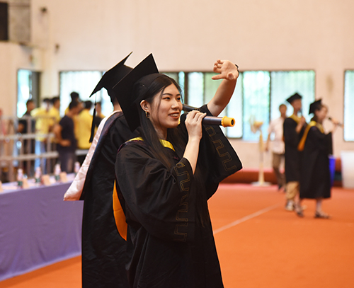 毕业生代表2015级会计专业1班贺斯琪同学代表全体毕业生感谢母校为学生成长成才所提供的氛围与环境,所有人将怀揣着对母校的不舍之情,在今后的道路上与“求真求美,成人线上赌博app ”的线上赌博app 精神时刻相随,梦想常青,担当常在。