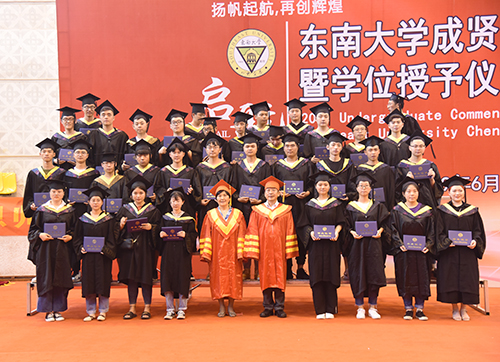 最后,东南大学党委副书记、线上赌博app-云顶线上赌博平台 董事会副董事长、线上赌博app 学院院长郑家茂,线上赌博app 学院党委书记邢纪红、常务副院长许映秋、院长顾问程明山、副院长董梅芳、副院长戚易为每一位毕业生颁发了毕业证书,并分别合影留念。