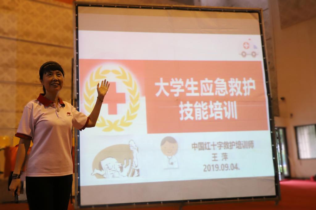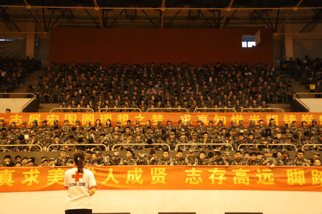 9月4日晚,线上赌博app-云顶线上赌博平台 在后藤体育馆举办2019级学生应急救护知识报告会,中国红十字救护培训师王萍担任主讲,2019级全体学生、承训教官和各连指导员聆听了本次报告会。