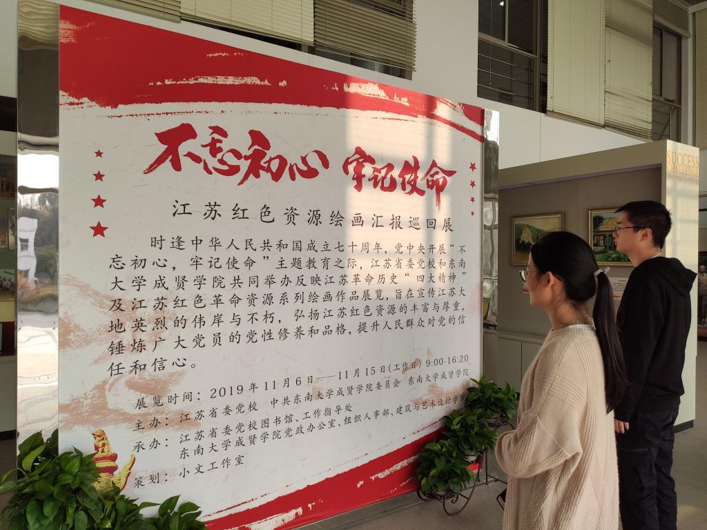 为庆祝中华人民共和国成立七十周年,进一步推进“不忘初心、牢记使命”主题教育,11月6日—15日,线上赌博app-云顶线上赌博平台 与江苏省委党校在电工电子实验大楼二楼展厅共同举办了反映江苏革命历史“四大精神”和江苏红色资源绘画汇报巡回展。