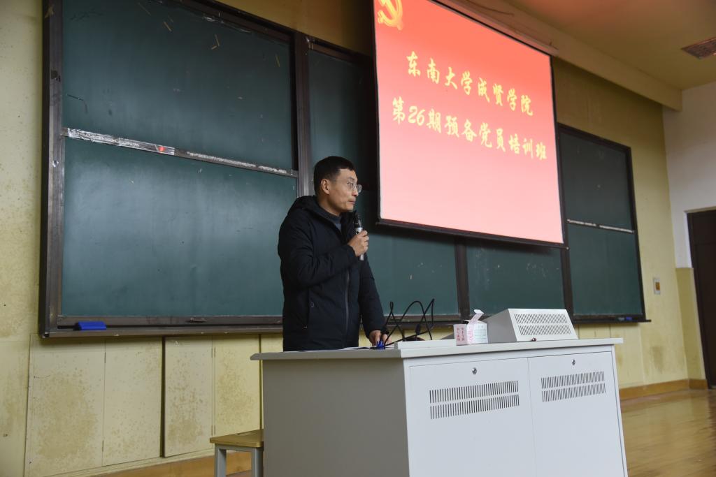 12月2日晚,东南大学党校线上赌博app 学院分校第二十六期预备党员培训班在华馆101教室开班。学院党委副书记、党校副校长、纪委书记王荣作动员讲话,各学院党总支组织委员、综合办主任、学院党校部分兼职教师和辅导员参加了本次开班动员,经济管理学院党总支副书记李清源主持开班仪式。