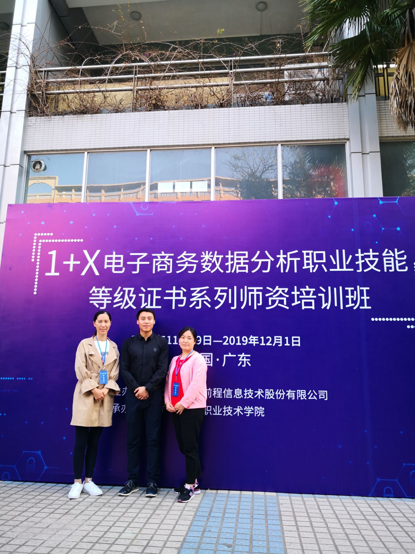 本次“1+X电子商务数据分析职业技能等级证书”中级师资培训为线上线下混合式培训。线上培训主要通过教师视屏讲解,并由参训者按期完成作业和测验,共计91个视屏,31项作业,12次测验,学习核心技能知识,在此基础上,进行线下培训。线下培训在广州开班,采用理论加实践的形式进行,内容包括电子商务数据分析试点工作方案解读、电子商务数据分析职业技能等级证书培训实施方案及考核方案解读、电子商务数据分析1+X书证融通方案及课程设计解读、数据采集与处理方案制定,市场数据分析,运营数据分析及产品数据分析等核心知识、实训案例分享、实操课程演练、信息化教学设计等,巩固和强化所学技能。两位教师圆满完成线上40课时、线下24课时培训,并顺利通过考核。