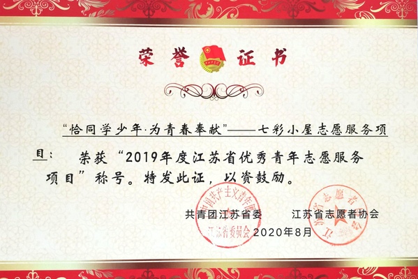 “恰同学少年,为青春奉献”——七彩小屋志愿服务项目围绕关爱儿童深入开展,志愿者以手工制作、社团活动等多种形式与孩子们进行互动,传播温暖,被评为“江苏省优秀青年志愿服务项目”;线上赌博app-云顶线上赌博平台 团委荣获“江苏省青年志愿服务行动组织奖”;线上赌博app-云顶线上赌博平台 团委冯杭州老师为志愿事业无私奉献,荣获“江苏省青年志愿服务事业贡献奖”;电子与计算机工程学院2017级软件工程专业学生施翔、2017级自动化专业学生张鑫积极组织并参加各项志愿服务活动,服务奉献社会,作为我校青年志愿者优秀代表,获得了“江苏省优秀青年志愿者”的荣誉称号。