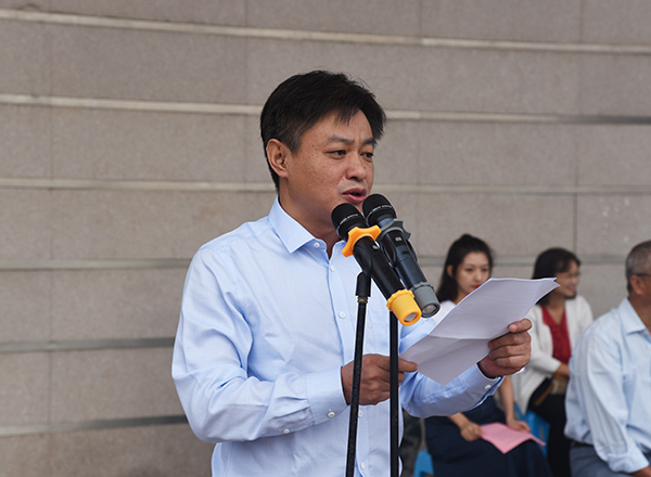 教师代表基础部数学教研室主任郁大刚老师代表全体教师发言。郁大刚老师从事教育工作已有三十八年,有着丰富的教学经验与人生阅历,他从过来人的角度对新生提出了期望:摆正学习态度,协调好学业与校园活动之间的关系;解放思想,创新思路,不断掌握新的学习方法;虚心向师长请教学习,提升个人能力。