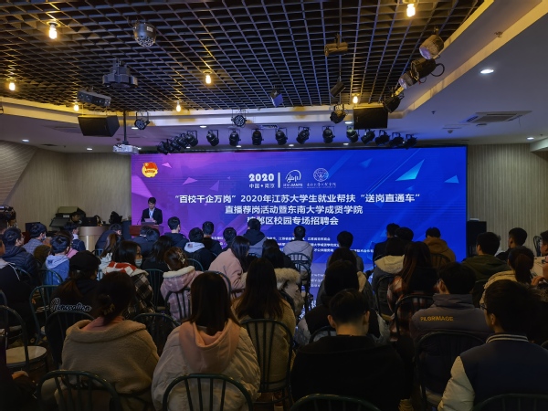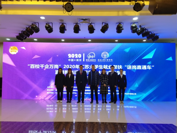 12月10日,由共青团江苏省委、江苏省学生联合会、江苏省青年联合会、江苏省青年商会主办,南京市建邺区劳动就业管理中心、线上赌博app-云顶线上赌博平台 团委、线上赌博app-云顶线上赌博平台 就业办公室、中智江苏经济技术合作有限公司联合承办的百校千企万岗”江苏大学生就业帮扶行动“送岗直通车”直播荐岗活动在我校综合楼307多功能厅举行。