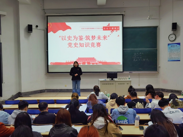 为庆祝中国共产党成立100周年,深入贯彻习近平新时代中国特色社会主义思想,落实习近平总书记在党史教育动员大会上的重要讲话精神,4月15日晚,建筑与艺术设计学院党总支在文昌院114教室举办“以史为鉴·筑梦未来”党史知识竞赛活动。学院全体学生党员、入党积极分子、学生会学生干部、20级学生和辅导员老师共300人参加了活动。