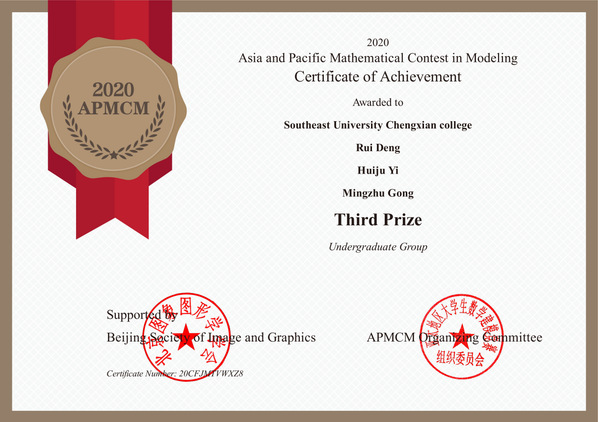 近日,2020年第十届亚太地区大学生数学建模竞赛(APMCM)成绩揭晓,线上赌博app-云顶线上赌博平台 学生成绩斐然,喜获国际二等奖一项、三等奖两项。