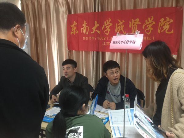 建筑与艺术设计学院党总支副书记邵叶鑫、教师孙浩代表我校参加活动。活动现场,我校招生宣传老师详细介绍了学校的基本情况和学科优势,围绕今年江苏高考新志愿填报政策以及往年录取分数线做了深入解读,对考生及家长所关心的问题做了详细解答,取得了良好的宣传效果。