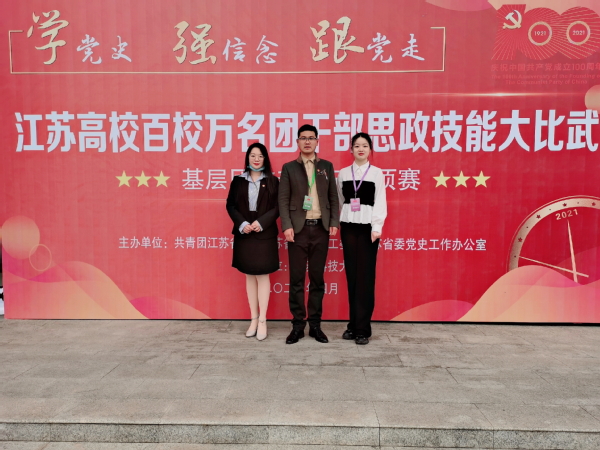为庆祝中国共产党成立100周年,聚焦思想引领主责主业,引领团员青年“学党史、强信念、跟党走”。4月24-25日,由共青团江苏省委、江苏省委教育工委和江苏省党史工作办公室联合主办,江苏科技大学承办的江苏高校百校万名团干部思政技能大比武基层团支部书记专项赛在江苏科技大学长山校区举办,我校机械与电气工程学院19电力1团支部书记靖逸萱同学积极备赛、表现优秀,荣获省赛决赛三等奖。