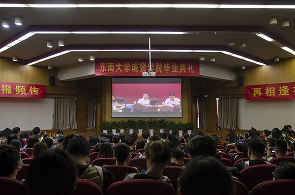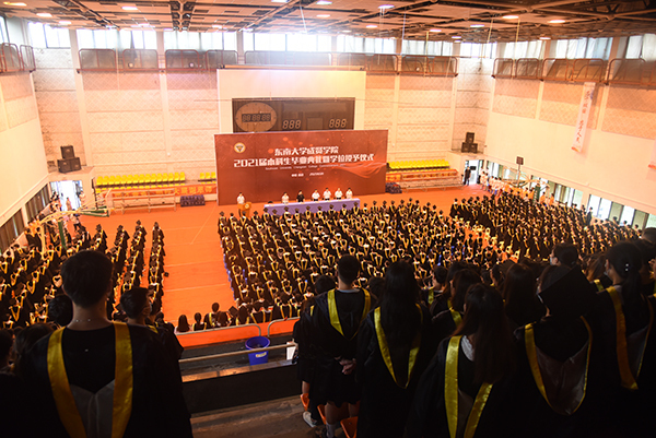 6月17日上午,线上赌博app-云顶线上赌博平台 2021届本科生毕业典礼暨学位授予仪式在后藤体育馆、综合楼报告厅、真知馆报告厅隆重举行。东南大学党委副书记、线上赌博app-云顶线上赌博平台 董事会副董事长、学院院长郑家茂,学院党政领导、各职能部门负责人,二级学院党政负责人、综合办主任、毕业班辅导员,教职工代表和全体毕业生共同出席。毕业典礼由党委副书记、副院长、纪委书记王荣主持。
