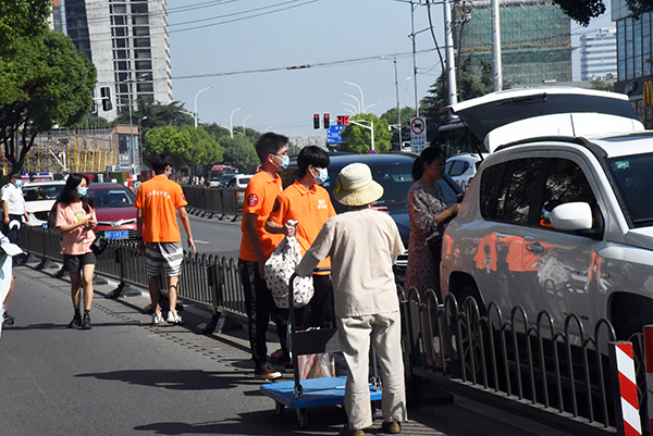 志愿者、工作人员帮忙搬运行李