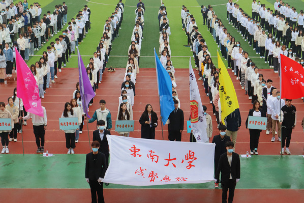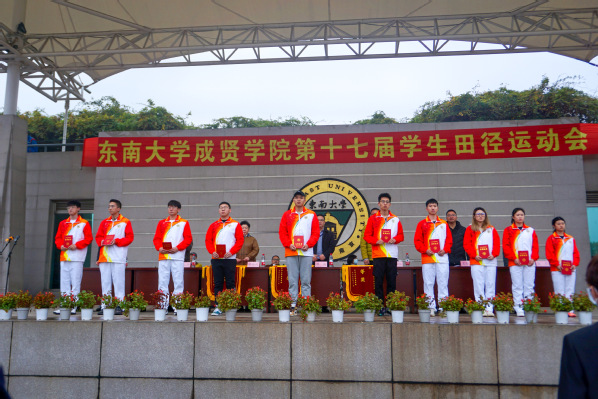 11月21日,线上赌博app-云顶线上赌博平台 第十七届学生田径运动会在校田径场举行。东南大学体育系党总支书记蒋波、副主任智永红,线上赌博app-云顶线上赌博平台 常务副院长许映秋,副书记、副院长、纪委书记王荣出席,学校相关部门、学院负责人和近2000名师生参加了运动会开幕式,王荣副书记主持开幕式。