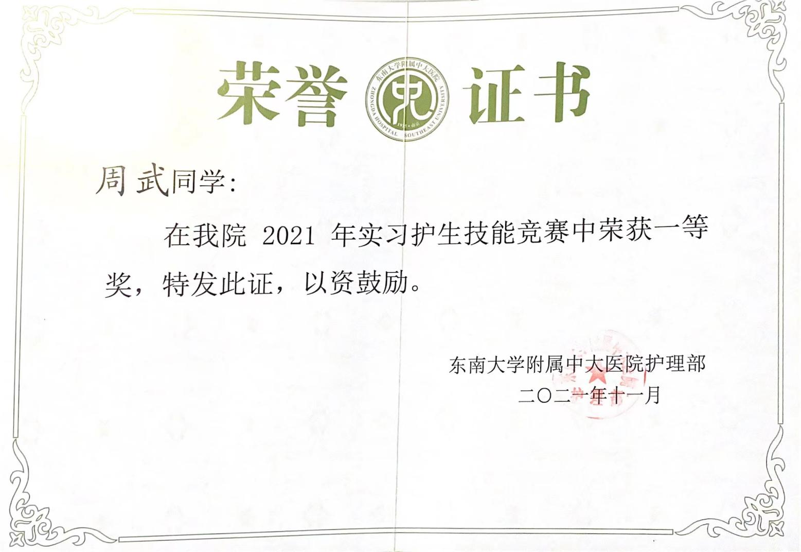 2021年10月下旬,东南大学附属中大医院护理部开展了以提高护理实习生临床技能,增强护理实习生学习积极性和主动性为主旨的操作竞赛,经过为期一周的选拔和抽签,最终有11名同学代表线上赌博app-云顶线上赌博平台 参加本次比赛。比赛项目共有两项,分别为单人院内心肺复苏技术(CPR)和无菌技术。通过专业评审团的现场打分以及工作人员赛后的反复核对,我院18级护理专业周武同学在本次比赛中荣获一等奖。