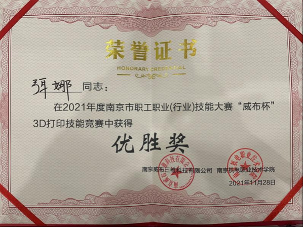11月28日,2021年南京市职工职业(行业)“威布杯”3D打印技能竞赛在南京机电职业技术学院举行,本次比赛由南京市总工会、南京市人力资源和社会保障局、共青团南京市委员会共同主办,来自全市12家相关专业院校、企业选拔的40名选手参加了本次竞赛。