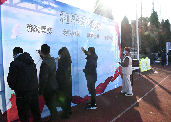 昭昭前事,惕惕后人;永矢弗谖,祈愿和平。2021年12月13日是第八个南京大屠杀死难者国家公祭日。机关党总支(各党支部)、党政办公室、党委组织部、党委学工部、校团委联合开展了“铭记历史、勿忘国耻、珍爱和平、圆梦中华”南京大屠杀死难者国家公祭日祭奠悼念活动,告慰逝者,警醒国人。学院领导、各职能部门负责人、机关各党支部成员、泰山新村派出所民警陆建兵及校院两级学生部门成员、2021级全体学生共同参加了活动。