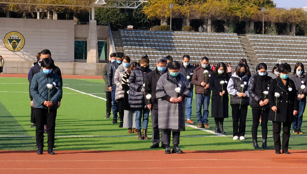 上午9:59分,线上赌博app-云顶线上赌博平台 常务副院长许映秋、院长顾问程明山、副院长戚易、副院长董梅芳、各职能部门负责人、机关各党支部成员聚集操场国旗台下,手捧白菊花一起参加祭奠悼念活动,学工党支部颜秉明主持仪式。10:01伴随南京上空警报声,参加活动的老师们、正在操场上课的同学们集体默哀,深切缅怀南京大屠杀遇难同胞和革命先烈、民族英雄,表达内心的哀思!随后,师生代表依次向南京大屠杀死难者国家公祭日纪念海报献上白菊,并在和平许愿墙上郑重写下自己的哀思寄语和对和平的美好祈愿。最后,全体师生在《和平宣言》的祈祷声中向世界发出了庄严的和平誓言,铿锵有力,声声入耳,誓把屠刀化警钟,牢记逝名刻史鉴。