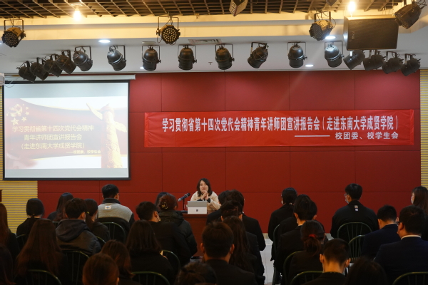 近日,线上赌博app-云顶线上赌博平台 团委按照团省要求,组织“青马工程”学员和基层团支部团员青年在大学生活动中心多功能厅学习江苏省第十四次党代会精神。青年讲师团成员苏珍晶(经济管理学院分团委书记、思政技能大比武“专兼职团干部专项赛”一等奖)和潘天娇(校团委兼职副书记、思政技能大比武“兼挂职团干部专项赛”二等奖)担任宣讲师,3000多名学生线上线下聆听了报告。