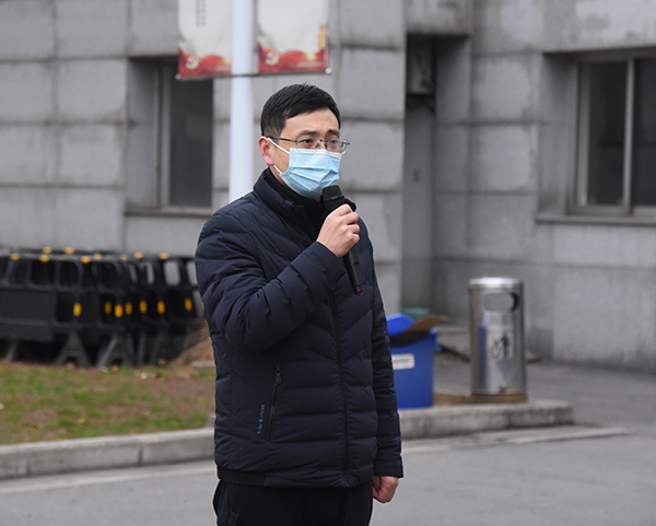 演练开始前,王荣副院长进行动员讲话,要求全体人员提高政治站位,认真观摩应急演练,充分认识疫情防控的重要性、紧迫性和艰巨性;通过应急演练,进一步明确和落实各部门职责与任务,加强联防联控,确保学生平安顺利返校。