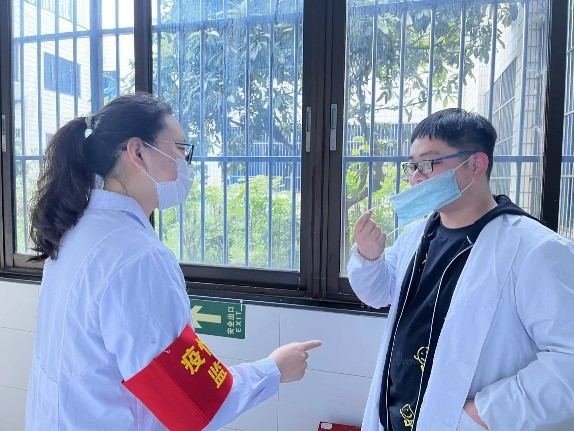 互相督促与帮助。除学院上级的督促和指导,学生内部自身也积极配合指导认真落实疫情防控政策。学院认真执行了楼层查房实施办法,各层楼长坚持每晚到寝查房,督促各寝室学生按时归寝。在学院公共场合各处,安排了疫情防控的志愿者,督促大家出入公共场合严格遵守戴口罩这一措施。