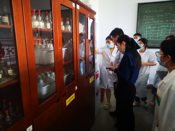 听取汇报后,专家们冒着39 ℃的高温酷暑,巡回检查了有关实验室现场。在土木与交通工程实验实训中心现场,专家们具体询问了行车的定期年检、安全使用及培训情况;在电气工程实验实训中心现场,专家们仔细查看了电机实验室及高电压实验室等实验实训场所的防触电措施,并就强电教学过程中可能出现的安全问题与毛副院长进行了有益的交流;专家们在制药与化学工程实验实训中心现场,重点了解了我校危险化学品的使用种类、使用量及采购方式等,检查了我校有关危险化学药品的使用、存储及化学废弃物处置等情况,并查看位于后山的危险化学品仓库。