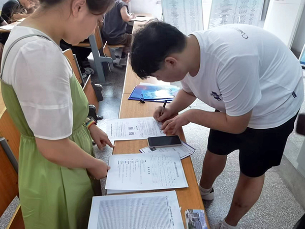 经过前期协调会议等相关准备,全校各单位精心组织、周密部署,层层压实疫情防控工作责任,高度重视学生到校情况。学生进校流程简化清晰,查验健康码、测量体温、核对身份信息等防疫工作按部就班进行;工作人员、志愿者温馨提醒,热情引导,利用小推车、汽车等工具助力帮助搬运行李,协助学生迅速完成进校工作;后勤管理处特准备绿豆汤等解暑饮品为学生与工作人员解暑降温,提供了全方位的周到服务。报到现场井然有序,平稳高效。