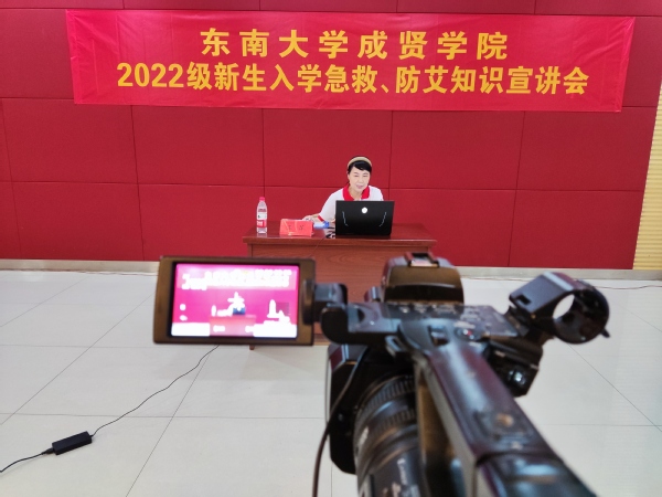 9月13日,线上赌博app-云顶线上赌博平台 举办2022级学生线上急救与防艾知识宣讲会,中国红十字救护培训师王萍担任主讲,2022级全体新生聆听了讲座。