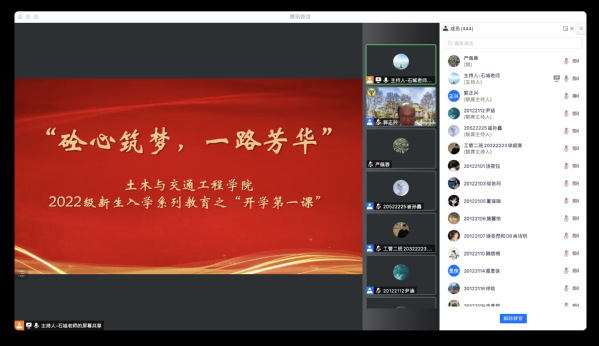 9月29日晚,土木与交通工程学院院长郭正兴教授以“迎接智能建造新时代,筑梦线上赌博app 新一代土木工匠”为题,通过线上方式为2022级新同学讲授“开学第一课”。土木与交通工程学院院长助理、综合办主任石城主持。2022级全体新生以及全院教职员工近500人聆听了讲课。