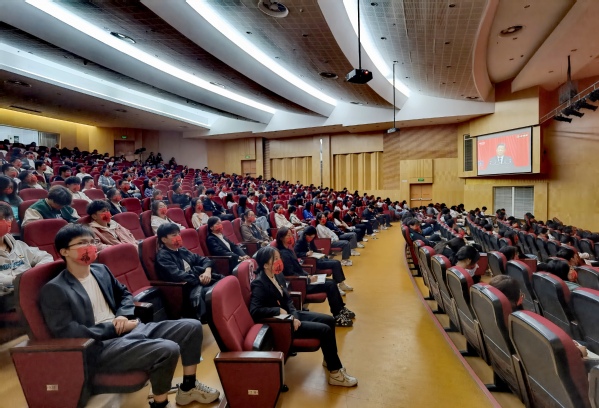 党委副书记、副院长、纪委书记王荣表示,高校承担为党育人、为国育才的光荣使命,要自觉把传达好、学习好、贯彻好党的二十大精神作为首要政治任务。他要求,各单位要迅速掀起学习宣传贯彻党的二十大精神热潮,切实把会议精神落实到全面贯彻党的教育方针、培养担当民族复兴大任的时代新人的使命中去。要立足政治引领,将习近平新时代中国特色社会主义思想的思维方法、价值理念、思想体系贯穿于学校思想政治理论课的教育教学实践中。要持续加强和改进高校思想政治工作,结合学生成长规律和教育规律,以习近平新时代中国特色社会主义思想铸魂育人。学校各部门、各级学生组织要开展主题聚焦、形式丰富的理论研讨和交流活动,多角度学习研讨阐释党的二十大精神的深刻内涵,深刻阐释党的二十大作出的重大判断和重大部署。要坚持教育优先发展、科技自立自强、人才引领驱动,要全面贯彻党的教育方针,认真落实立德树人根本任务,着力造就拔尖创新人才,聚天下英才而用之,聚天下英才而育之。