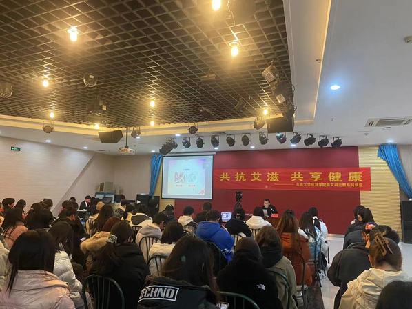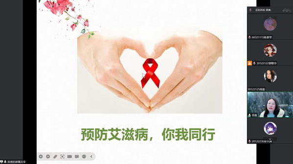 活动当晚,校团委志工部分别邀请了江苏警官学院卫生站薛岳老师和江苏省人民医院浦口分院苗香医生开展了“共抗艾滋,共享健康”防艾主题宣讲会,线上线下相结合,约600名师生聆听了讲座。薛老师从艾滋病疫情介绍引入,并结合各种数据、图片、案例等,分别介绍了艾滋病的概念、传播途径、艾滋病防控基本知识;苗医生从关注女性健康角度讲解了健康常识、避孕、防艾知识及感染艾滋病会对学习、就业和家庭等方面带来的较大影响,呼吁同学们要自尊自爱,养成良好的健康生活习惯。