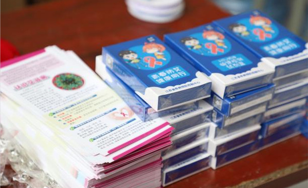 活动当日,食堂主干道悬挂了主题横幅、以喷绘、展板、橱窗方式进行艾滋病防治知识的宣传;校团委红十会学生分会化身防艾宣传志愿者派发宣传册,向同学们介绍艾滋病的危害与相关防范知识;同学们在防艾宣传板上留下自己的姓名和祝福,以一条条现场自制的红丝带来表达自己对艾滋病群体的关怀与善意;现场还进行了有奖知识问答、医护咨询、“爱的抱抱”等活动,参与现场活动即可领取一份防艾宣传单页、红丝带徽章、艾滋病检测试剂、安全套及帆布包,小小的礼品承载着我们对艾滋病防治事业的决心,与大家一起合力共创无“艾”未来的美好期望。活动现场同学们积极参与,气氛活跃。
